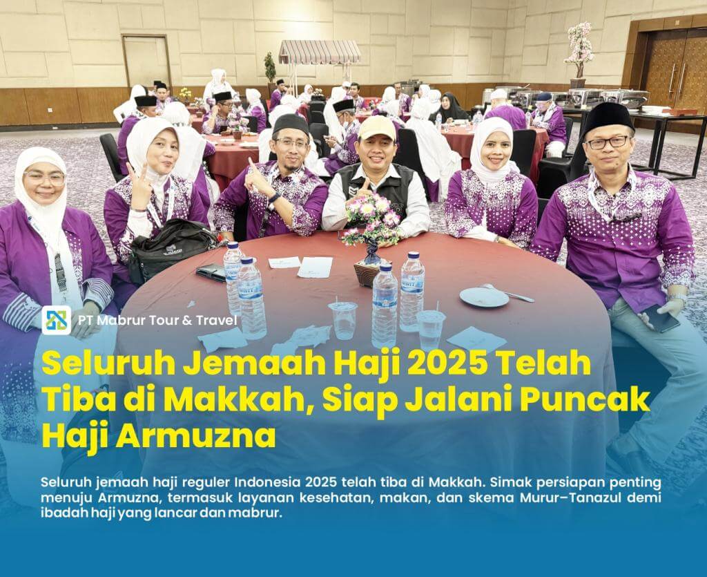 MABRURTOUR - Sebanyak 203.149 jemaah haji reguler Indonesia dari 525 kloter telah tiba dengan selamat dan sehat di Kota Makkah. Saat ini, mereka memasuki masa tenang menjelang Armuzna (Arafah, Muzdalifah, Mina)—puncak ibadah haji yang menuntut kesiapan fisik, mental, dan spiritual secara optimal.