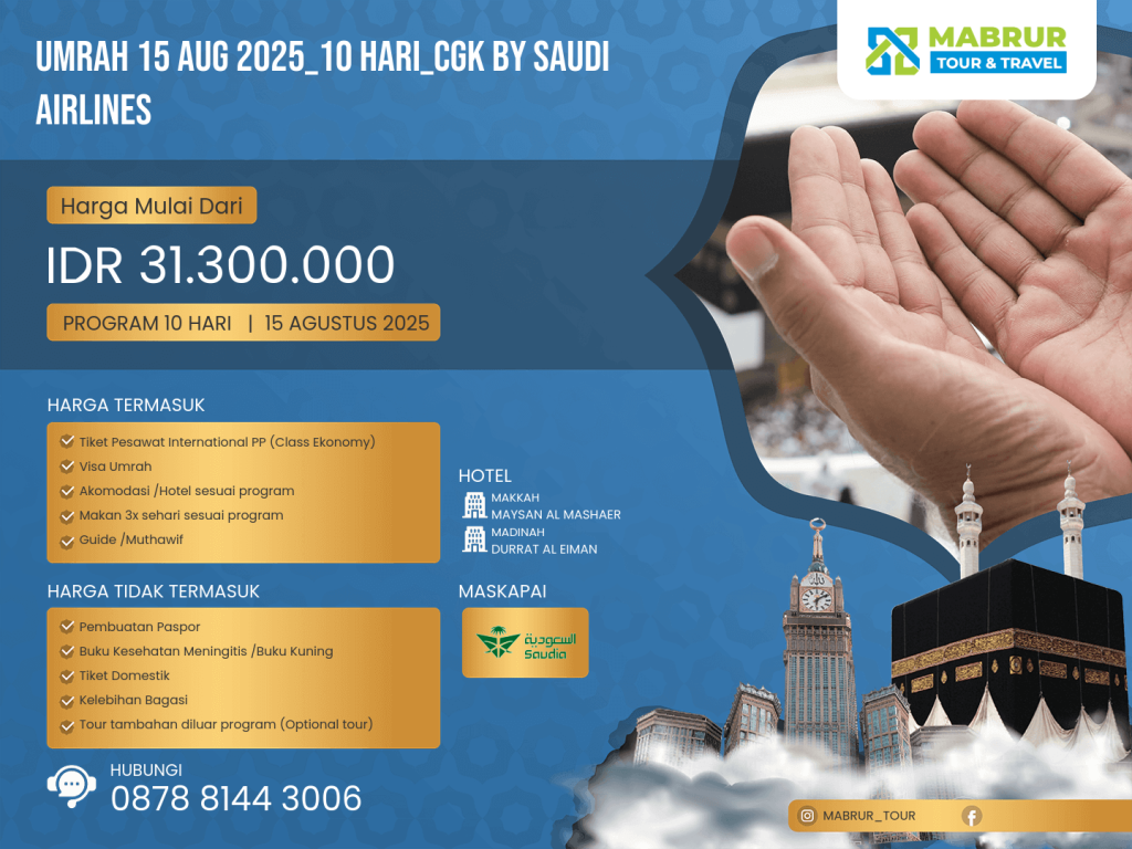 Umrah 15 AUG 2025_10 Hari_VIP_CGK by Saudi Airlines