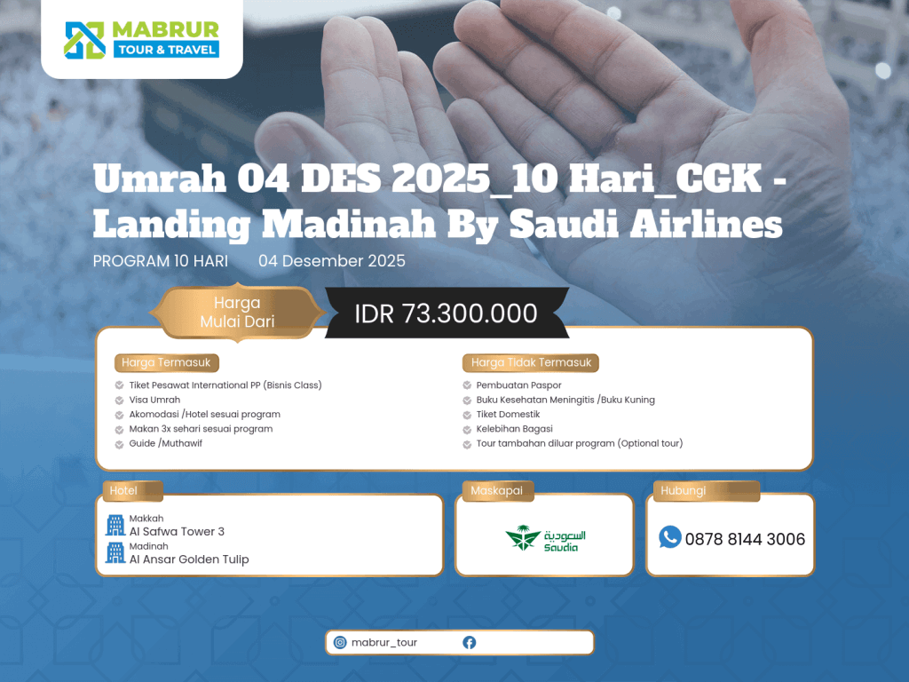 Umrah 04 DES 2025_10 Hari_CGK - Landing Madinah by Saudi Airlines