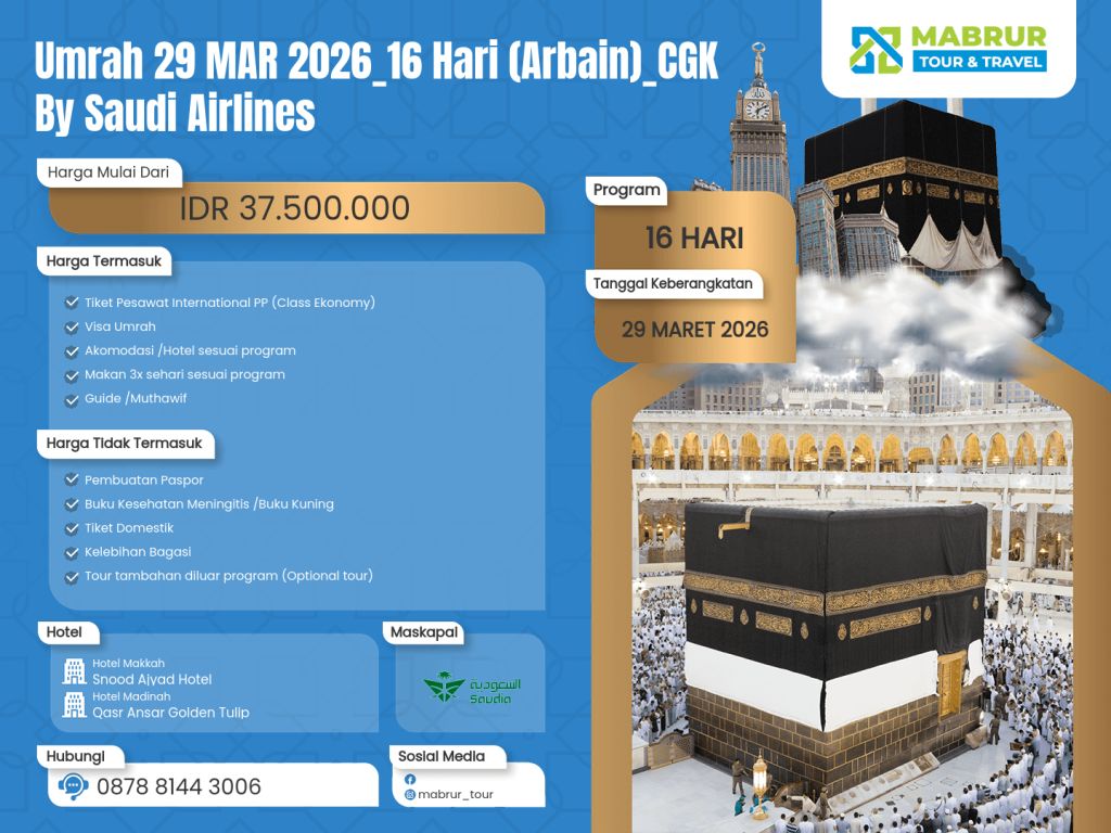 Umrah 29 MAR 2026_16 Hari (Arbain)_CGK by Saudi Airlines
